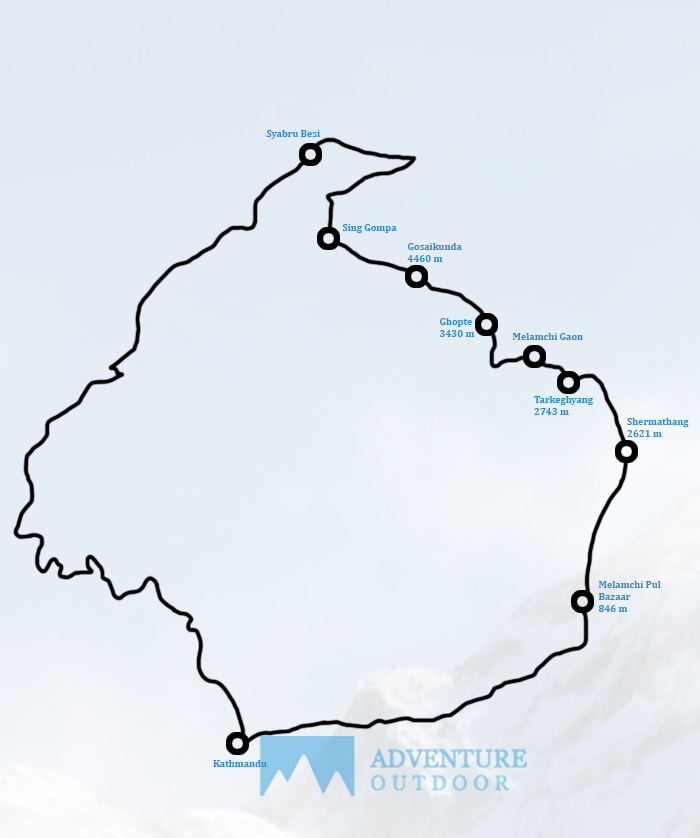 Beginning from the flawless slope town of Syaphrubesi, our trek goes through delightful conifer timberlands of the Langtang National Park while in transit to the higher inclines. We traverse the high Alpine yak fields, ice sheets and moraines around Kyanjin; the Sacred Lakes of the Hindus/Buddhist including Lake Gosainkunda (4380 m) and slide into Helambu by means of the Laurebina Pass (4610 m) to Ghopte (3430 m) until the point that we reach Trake Gyang. Along this trail you will have a chance to encounter the entire scope of Himalayan geology as the trailheads south through a lavish green valley and mountain culture before coming back to Kathmandu.